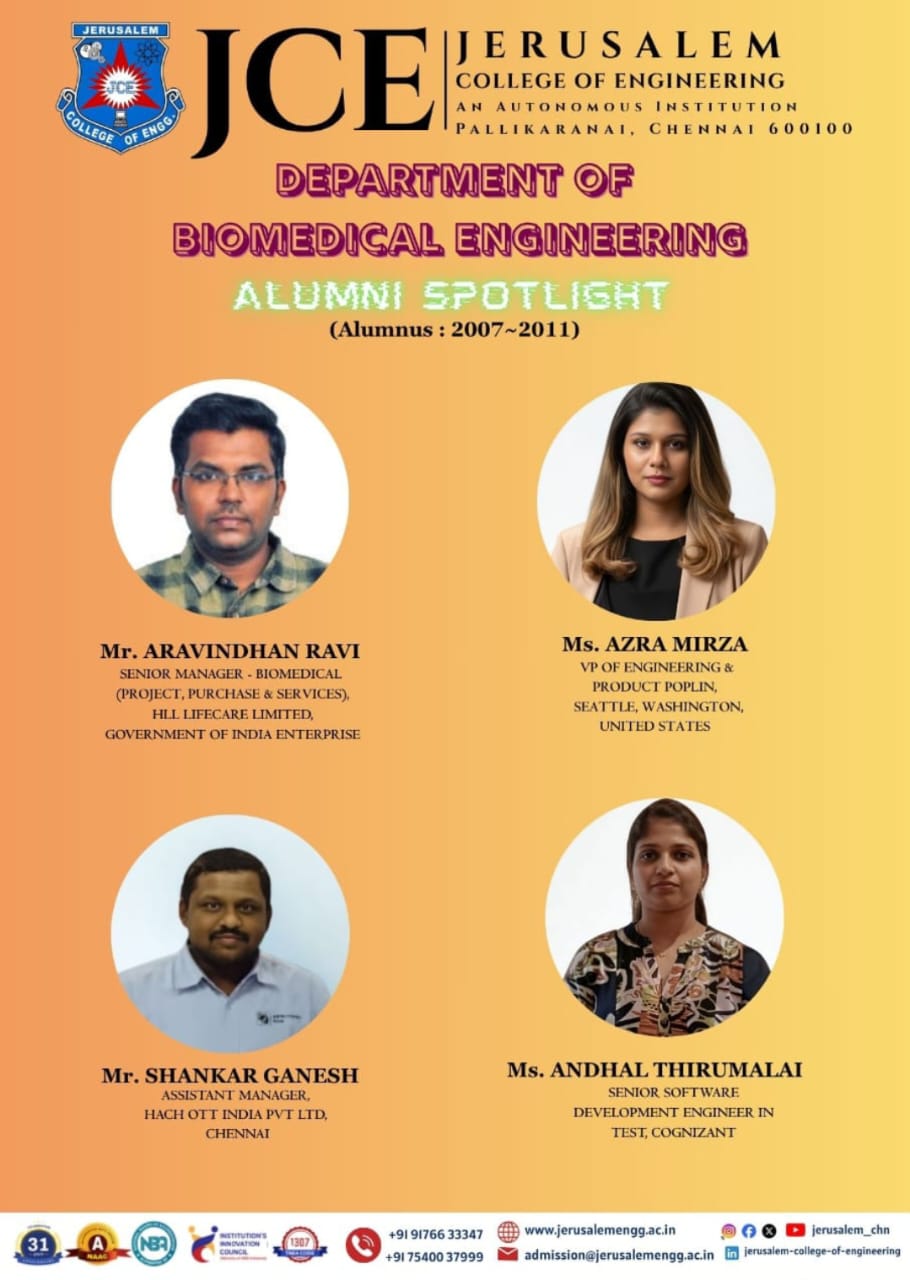 The Department of Biomedical Engineering proudly highlights the achievements of our distinguished Alumni (Batch: 2007–2011) who are making significant contributions across industries worldwide.